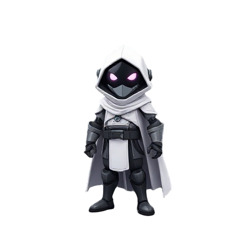 a 2d character a robot in a white cloak