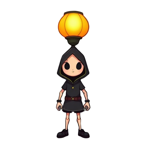 lampara con dos piernas sin brazos, con capa y vestimenta negra.