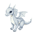 a silver baby dragon character in a standard idle standing pose. retro snes rpg style. clean solid color background or transparent background. scales rendered using a limited palette of greys, whites, and pale blues to simulate metallic shine. sharp crisp