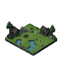 grass, whater, terrain ground, water and medieval objects. pixel-art dark-fantasy high-detail, dark muted palette.