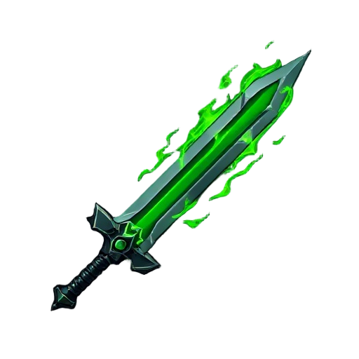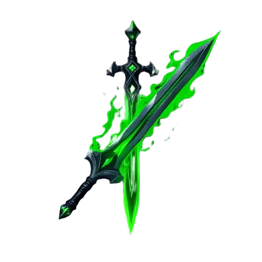 a dark fantasy art of powerfull sword with green flames