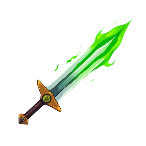 a sword of cinquedea type with green flames