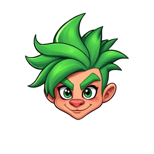 com base na imagem fornecida, aqui está a descrição detalhada cabelo: o traço mais marcante é o cabelo verde vibrante, volumoso e espetado. o estilo "espetado" * rosto: ele tem pele morena (ou bronzeada), sobrancelhas verdes que combinam com o cabelo