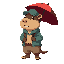 humanoid capybara with everyday clothes holding an umbrella, for video game, cartoon, 2d, flat colors, dungeon