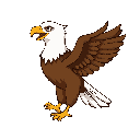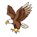 eagle in perfect 2d side view, facing left. only left wing visible. wings raised in up-flap pose. brown body, white head, yellow beak and talons. clean outline, sharp pixels, no perspective, transparent background.”