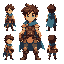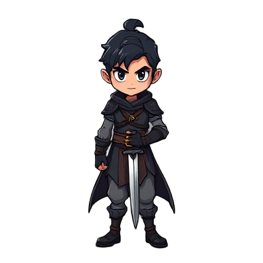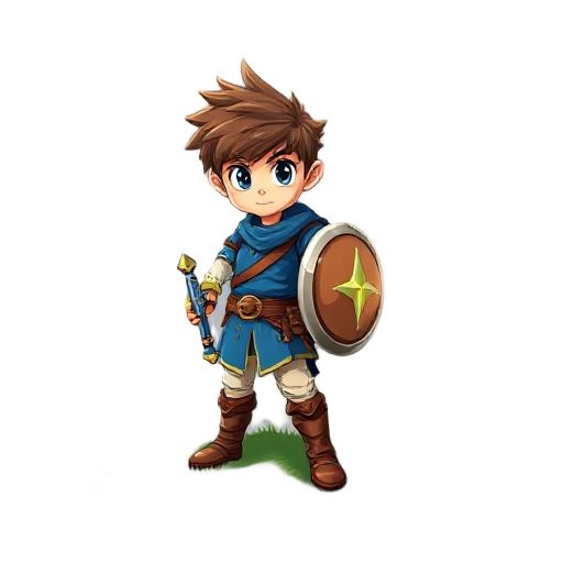 a brave young hero with a unique silhouette, expressive face, detailed outfit, 16-bit retro style, suitable for an action-adventure fantasy game.