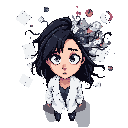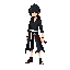 personagem parecido com um shinigami de bleach com espada na cintura e cabelo preto