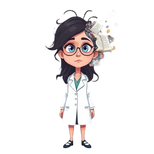 a woman researcher descending into fragmented consciousness, half her face clear and focused while the other half dissolves into abstract dream imagery, lab coat and tangled dark hair, surrounded by floating medical notes and sleep symbols, surreal psycho