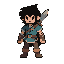 a young adventurer with a charismatic look, vibrant colors, 16-bit style, heroic but approachable appearance, designed for a fantasy game.