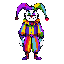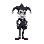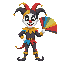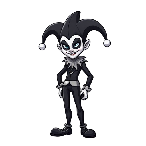 um jester preto e branco que segura um leque arco iris