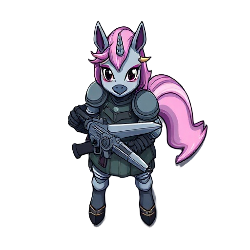 a pony scifi knight with a gun