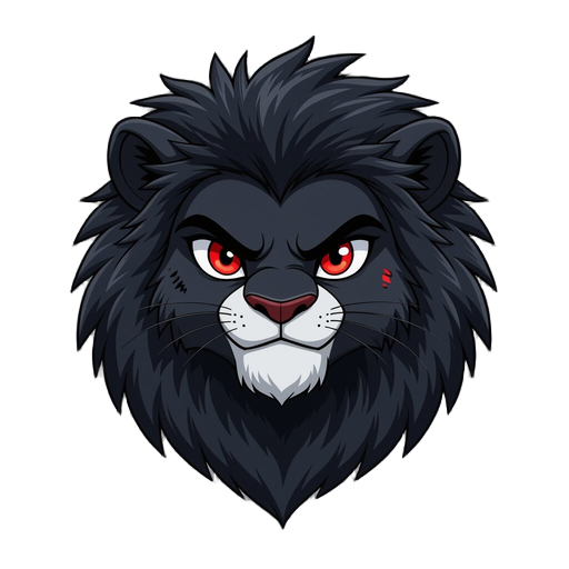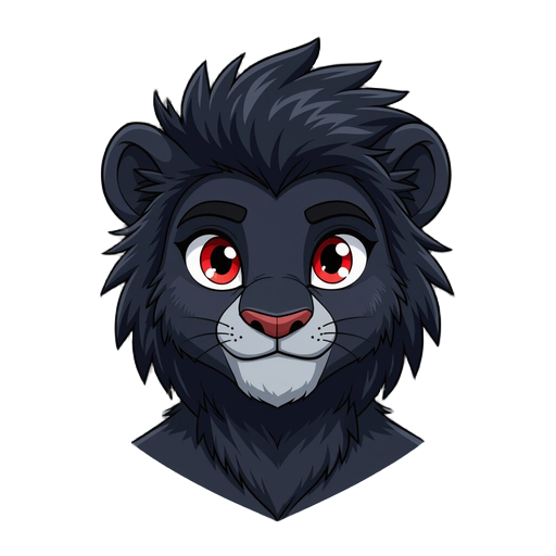 furry, male, lion, black fur, black face, red eyes