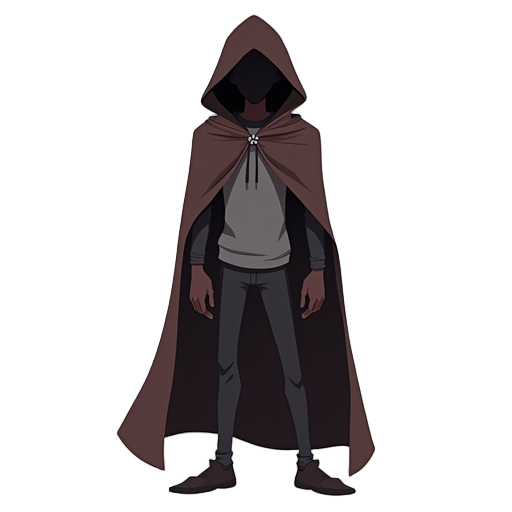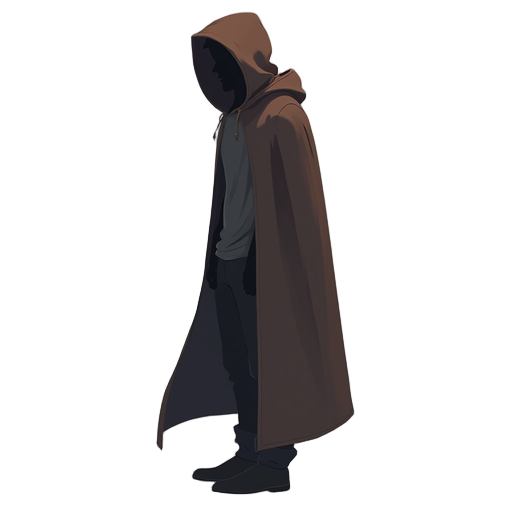 create a silhoutte of a man, thin and tall, wearing a cape with a hood but it's jaded and dark brown.