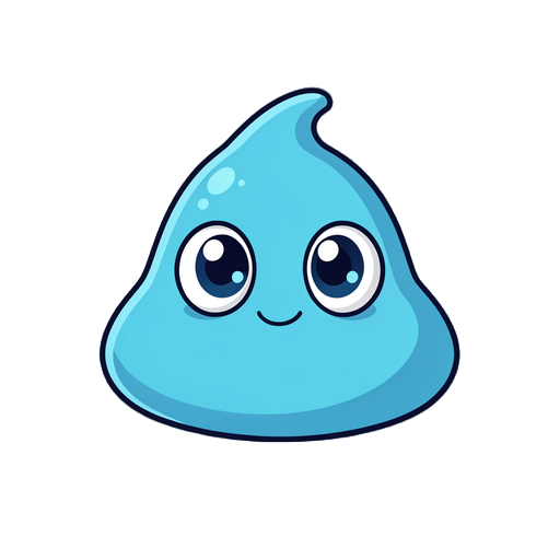 con slime dễ thương màu xanh dương, với đôi mắt to, không có giọt nước thừa