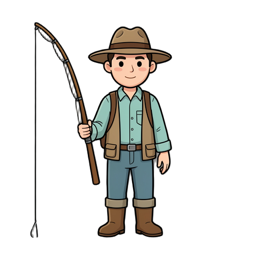 i want a simple character, that's a fisheraman and has a fishing pole in his hand