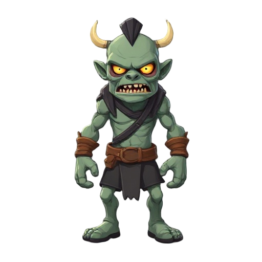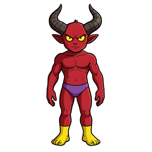 spawn a demon with large horns, yellow eyes, red upper clothing, purple underwear, yellow feet
