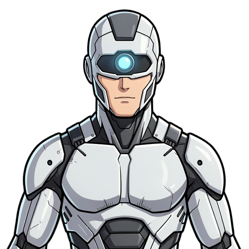 um manequin masculino com aparencia de robo futurista, ele nao ttem rosto,no local do rosto seeia um visor ocular unico