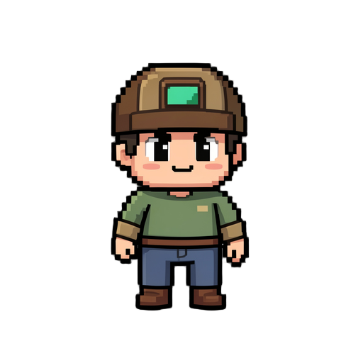 이 캐릭터를 2등신 픽셀 캐릭터로 리메이크해봐, 소울 나이트 느낌으로
