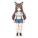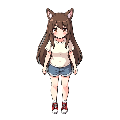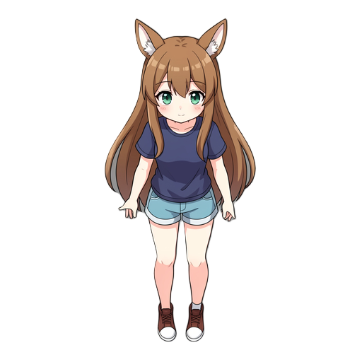 top down anime girl wearing shirt and short shorts with long hair and animal ears