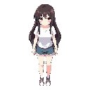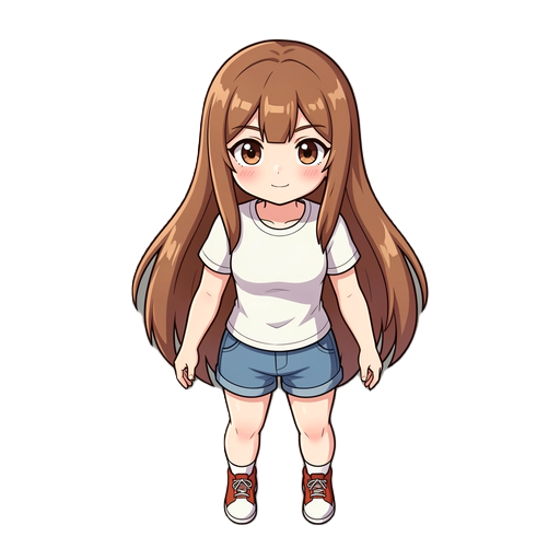 top down angle rpg pokemon cute fit anime girl wearing only shirt and shorts long hair