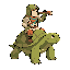 a youthful dwarven soldier riding a large turtle mount, wearing a turtle-shell helmet. this soldier is a scout, lightly armored, either looking through a spyglass or pointing off into the distance. the armor might have colorful adornments, like a scarf or