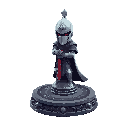 a fantasy knight character designed to look like a living chess piece, standing on an ornate, circular chess piece base.