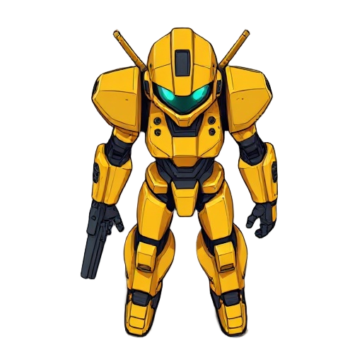 robo humanoide, em tons de amarelo e marrom, alguns pontos de encaixe de armas mas estão vazios ainda
