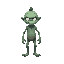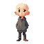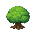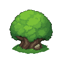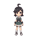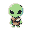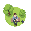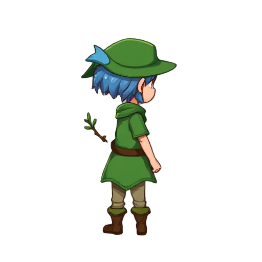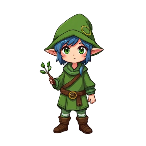 chibi-style character facing three-quarters to the right, a young druid dressed in green, wearing a green hat, with blue hair, holding a small branch.