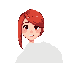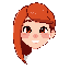 create a face of a woman. she has red hair with a long fringe that clearly covers one of her eyes, and she is smiling with a very friendly expression. the style should focus on clarity and warmth, emphasizing the gentle features of her face.
