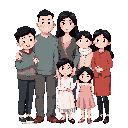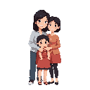create an image as if it were a portrait of a woman with black hair together with her family. the composition should feel warm and intimate, capturing a natural family moment with clear facial expressions and a friendly atmosphere.