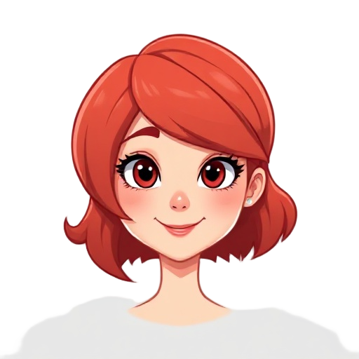 create a face of a woman. she has red hair that covers one of her eyes, and her expression is very friendly. the style should focus on clarity and warmth, emphasizing the gentle features of her face