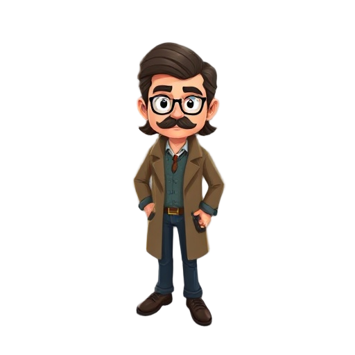 detective with mustache and longer hair, similiar to disco elysium character harry