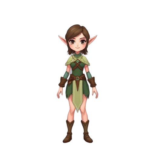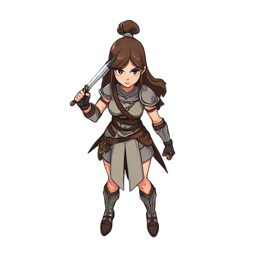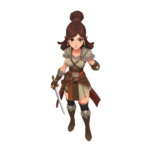 create a 2.5d top-down game asset in simplified cartoon style. flat colors, soft outlines, clean shapes, readable from top-down. keep proportions consistent, avoid extreme perspective. warrior woman – female melee fighter, light armor, short sword, determ