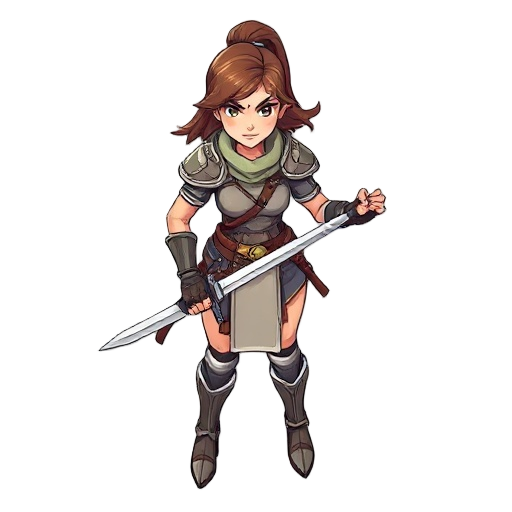 warrior woman – female melee fighter, light armor, short sword, determined expression, top‑down readable silhouette.