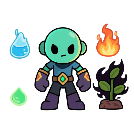 chat eu tenho que pegar um personagem em 2d que e um jogo mtroide vânia que o personagem pega poderes elementais tipo:água, fogo,dark,plant e são esses ,não pode ser um personagem genérico ,mas faça um personagem principal que não esteja com. nenhum poder