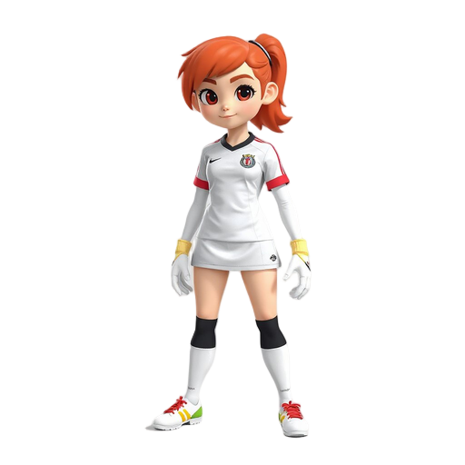 a female soccer goalkeeper. 2d character, red hair, poses ready.