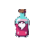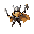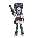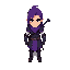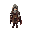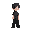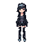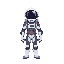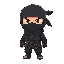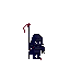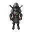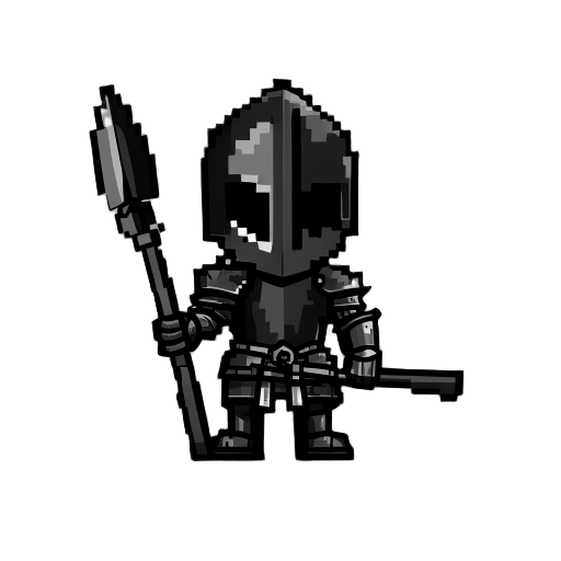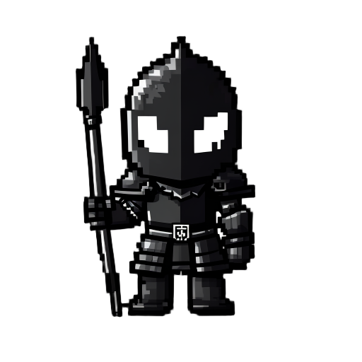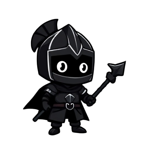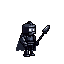 black knight, small, pixelated, 2d, completely black, round white eyes, spear.
