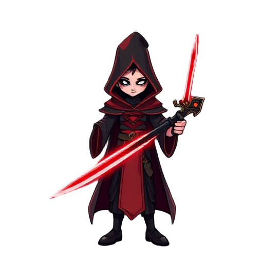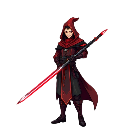 create an image of a mage with a black and neon red sword. the mage’s colors are red and black