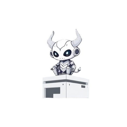 create a complete, horizontal logo for the “genesis core” operating system, with an organic cyberpunk aesthetic. the scene shows the mascot, a stylized and cute robotic demon, sitting on the edge of a minimalist futuristic building. its design is more org