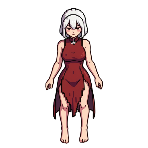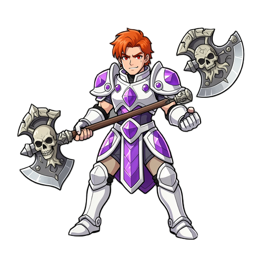 faça 500 sprites de uma personam ruiva,olhos vermelhos,de armadura branca com diamantes roxos,com machado enorme detalhado com caveiras,para um jogo de luta 2d