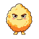 cute popcorn mascot character with a round body made of popcorn, small legs, yellow and orange colors, mischievous eyes and a smug smile, simple cartoon style
