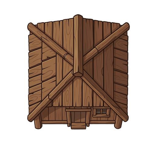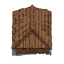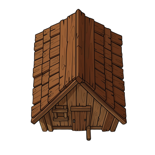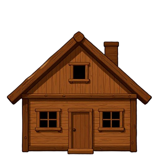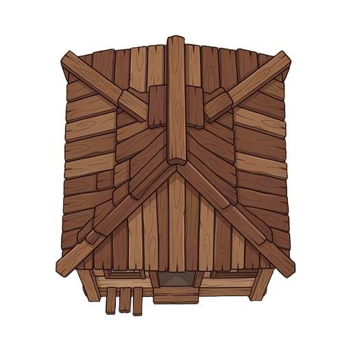 crie uma casa de madeira para um jogo 2d no estilo top-down. a casa deve ter aparência simples e rústica, feita com tábuas de madeira visíveis, com cores em tons marrons e detalhes leves para dar profundidade. a casa deve incluir: telhado visto de cima (p