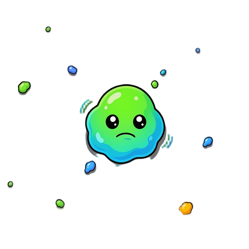 crie um inimigo slime para um jogo 2d no estilo top-down. o slime deve ter aparência gelatinosa, com formato arredondado e levemente irregular, cores vibrantes (como verde ou azul) e uma animação simples de "quicar" enquanto se move. o inimigo deve: se mo