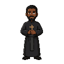 padre, tom de pele parda, roupas pretas, terço nas mãos