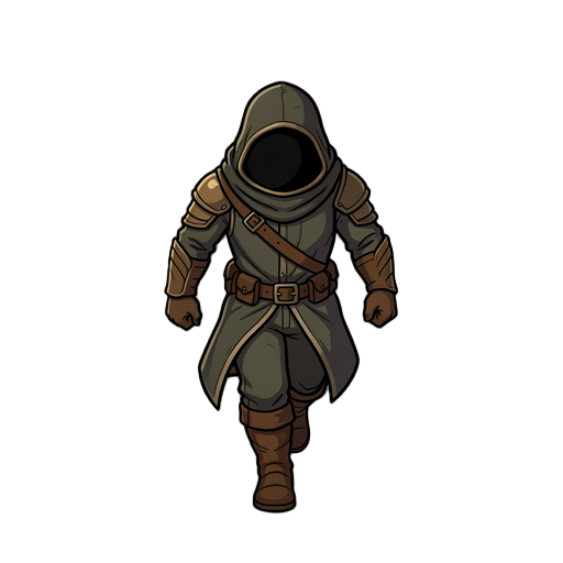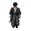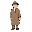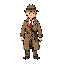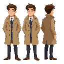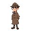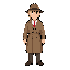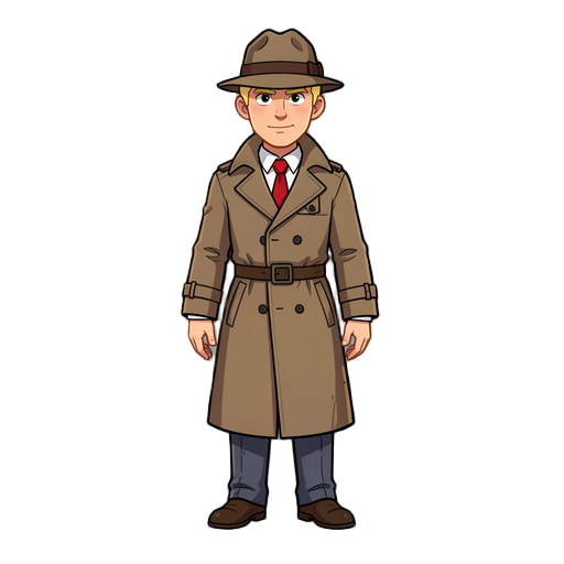 game character detective, trench coat, simple style, idle pose