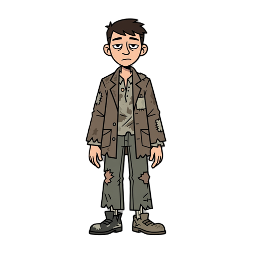 generate a person dressed in homeless clothing