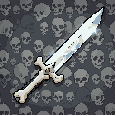skull-themed. the handle is made of bone. a sharp and shiny sword.