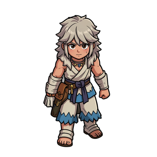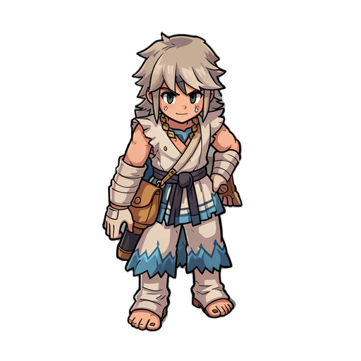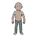 aplique a imagem 1 na posição da imagem 2 respeite apenas a posição da segunda, mantendo as curvas do corpo a imagem gerada deve ter 30px de largura por 55 de altura será o sprite iddle do personagem